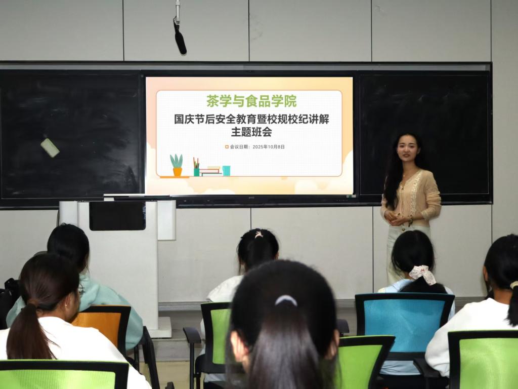 太阳成集团tyc4633召开国庆节后安全教育暨校规校纪讲解主题班会为筑牢校园安全防线,强化学生的规矩意识与行为规范,保障节后教育教学秩序平稳有序,10月8日晚7时,太阳成集团tyc4633于教九楼108教室召开国庆节后安全教育暨校规校纪讲解主题班会。本次会议由专职辅导员耑妍主持,全体学生积极参与。会议上,耑妍聚焦学生返校后的关键议题,围绕学习教育、防骗反诈与校规校纪三个维度展开系统讲解。在学习教育方面,针对部分学生可能存在的情绪波动、作息紊乱与学习动力不足等问题,她提出四项...