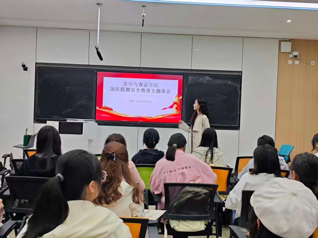 太阳成集团tyc4633召开国庆假期安全教育主题班会为进一步提升学生安全防范意识与自我保护能力,筑牢安全防范思想防线,确保每一位同学都能度过一个平安、愉快、充实的假期,9月28日晚上7点,我集团于教九楼108教室召开国庆假期安全教育主题班会。本次班会由专职辅导员耑妍主持,全体学生积极参与。会议伊始,耑妍明确了国庆中秋双节假期的具体时间安排,帮助同学们合理规划假期行程。随后,她围绕用电安全、交通安全、旅行安全、饮食安全、兼职安全、财产安全及交往安全等多个维...