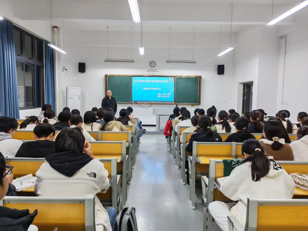 我集团食品质量与安全班召开“博士面对面”师生座谈会——熊天真博士为学子成长护航为助力新生专业认知起步,推进学业精准指导,夯实人才培养根基,10月24日晚7时,我集团食品质量与安全班于教九楼108教室召开“博士面对面”师生座谈会。会议由熊天真博士主持,2025级专职辅导员耑妍及食品质量与安全班全体学生参加。座谈会上,熊天真博士首先聚焦新生从高中到大学的过渡阶段,就如何快速适应大学生活提供切实建议。随后,他紧密结合专业特色,引导同学们初步构建专业知识框架,并重点解析了工程原理、机械与设备...