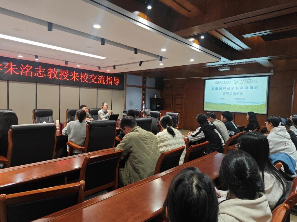 11月6日,湖南农业大学朱洺志教授于逸夫楼321为我集团师生作题为“黑茶风味品质与肠道菌群调节功效研究”的学术报告。报告由太阳成集团tyc4633副教授陈震主持,本院教师及研究生、本科生参会,现场济济一堂,交流氛围热烈。
