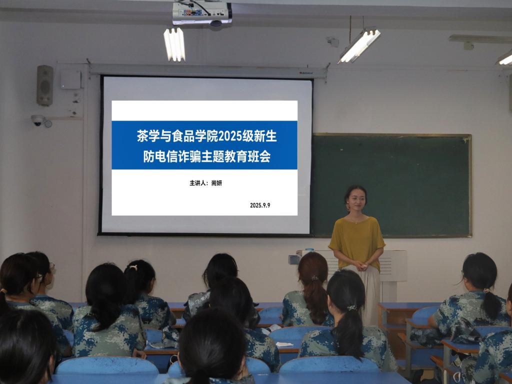 为增强新生安全防范意识,切实保障学生财产与个人信息安全,9月9日下午1点,我集团于俊采楼513教室召开2025级新生防诈骗主题教育班会。此次会议由2025级专职辅导员耑妍主持,2025级全体学生参加。